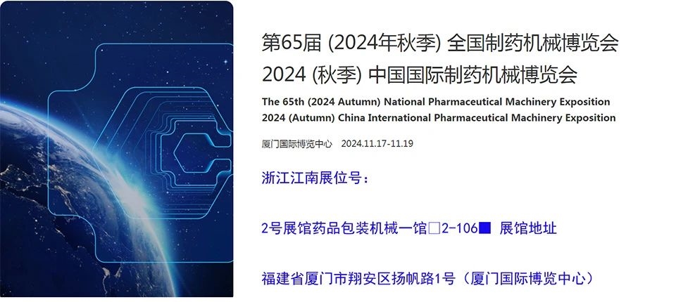 诚邀丨浙江JDB电子试玩平台与您相约第65届(2024年秋季)全国制药机械博览会